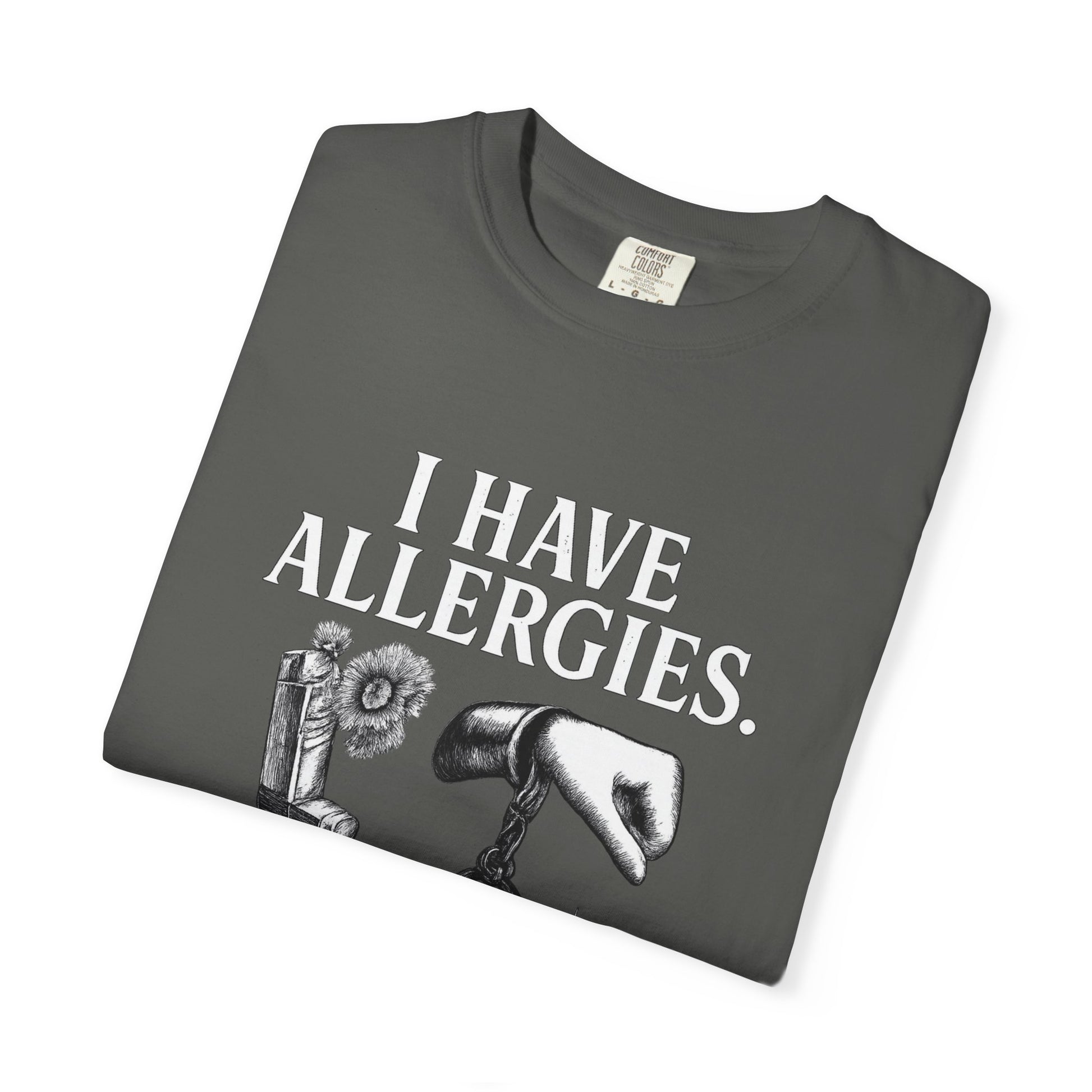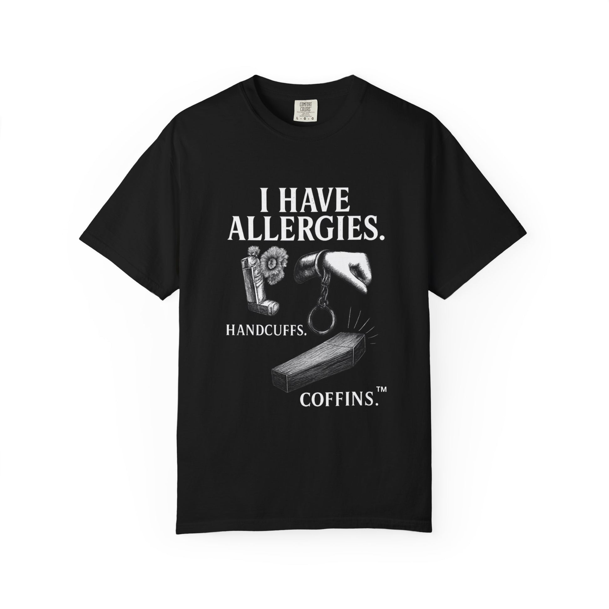 I Have Allergies, Handcuffs, and Coffins Tee – Broken Crayons Collection™ | Empowerment Apparel for Dark Truths