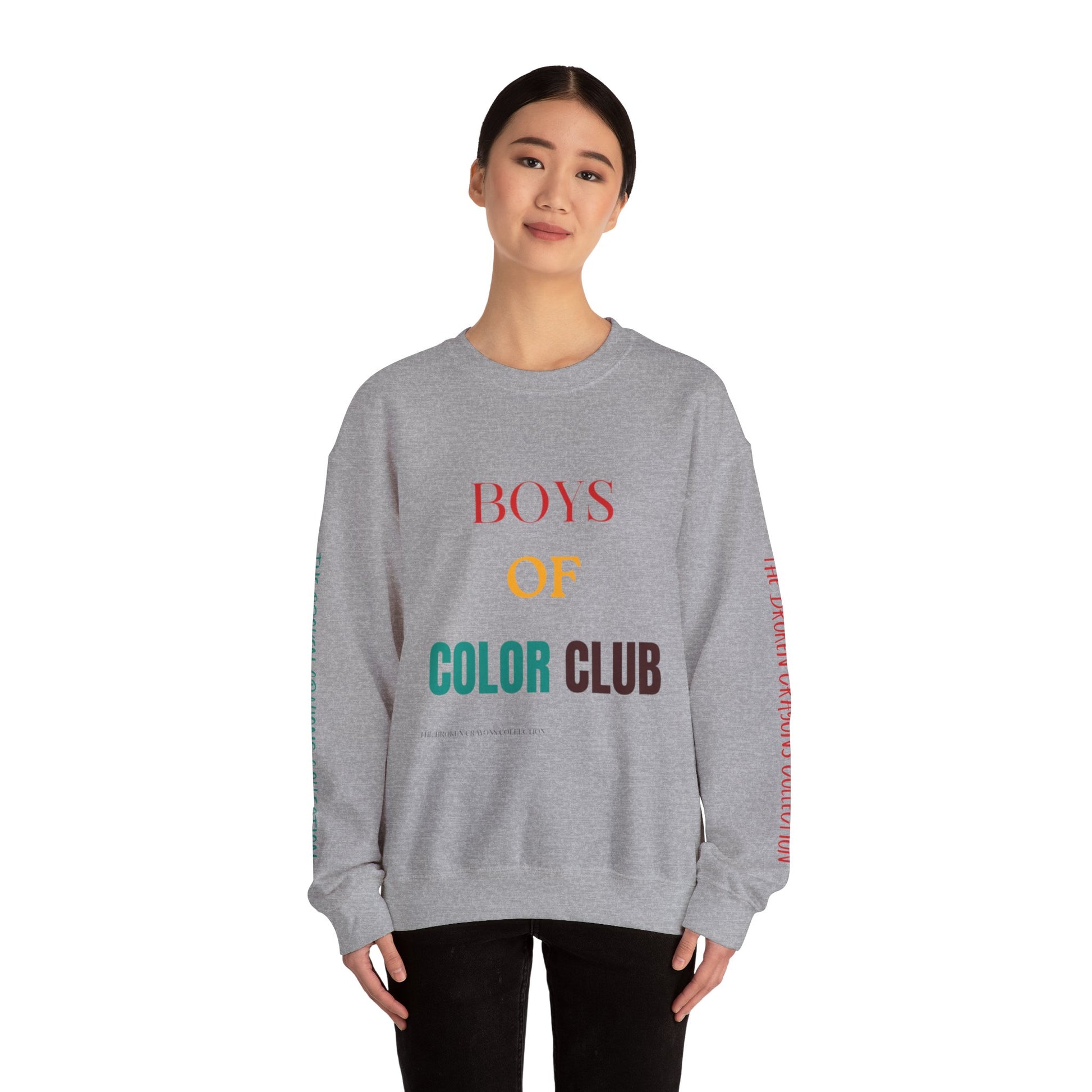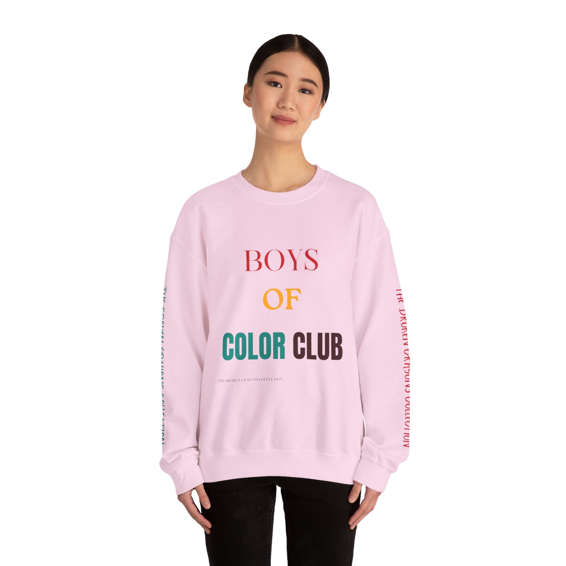Celebrate identity with the BOYS OF COLOR CLUB sweatshirt. Bold colors, affirming message, and official Color Club sleeve print. Movement-ready.