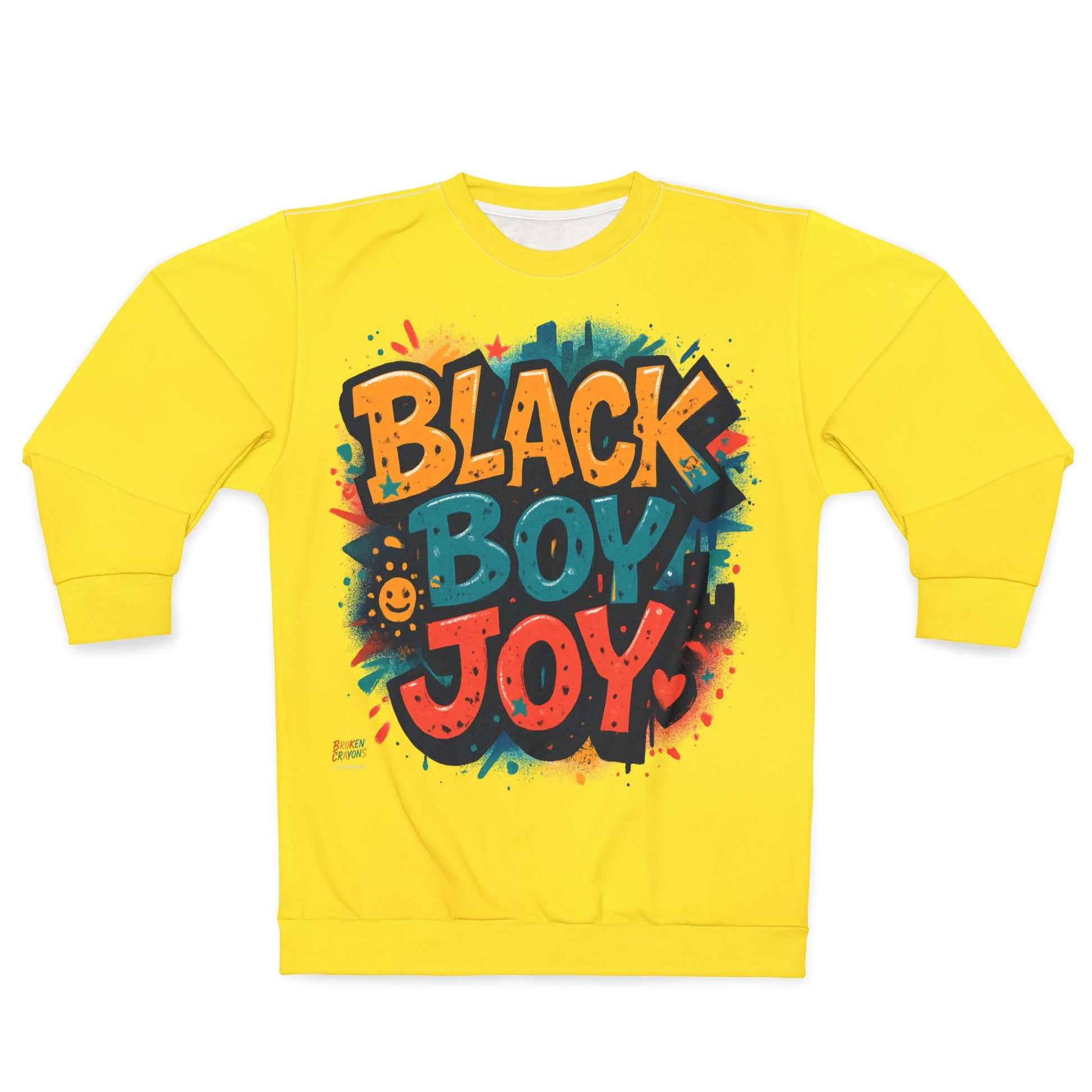 Wear the movement! This eye-catching yellow "Black Boy Joy" sweatshirt features a powerful, playful graffiti design. It's more than a crewneck—it's a positive affirmation and celebration of Black culture and positivity. Perfect as a gift or a vibrant addition to your statement apparel collection.