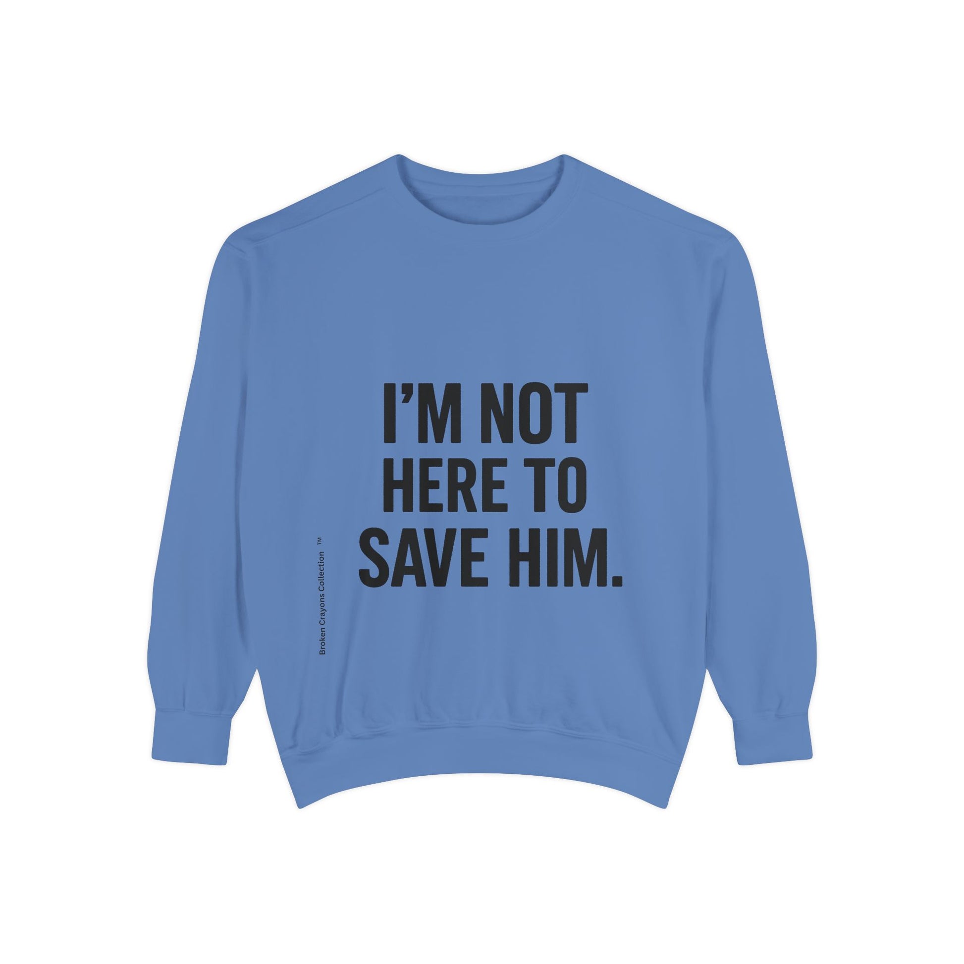 I’m Not Here to Save Him Coral Sweatshirt – Empowerment Apparel for Mentors & Movement Builders