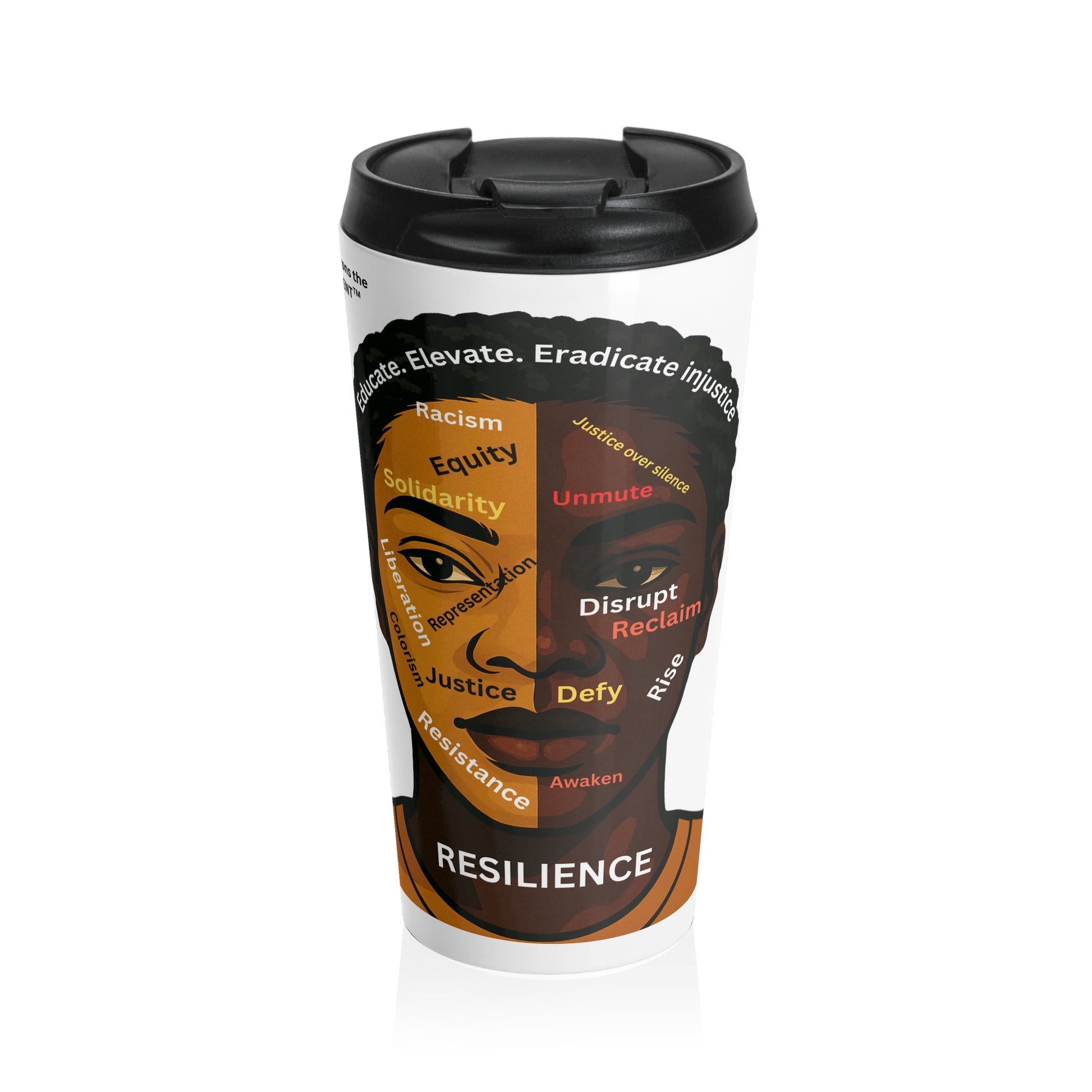 “Resilience Travel Mug – Empowerment Art Tumbler, Durable Stainless Steel Coffee Cup, Social Justice Inspired Design”