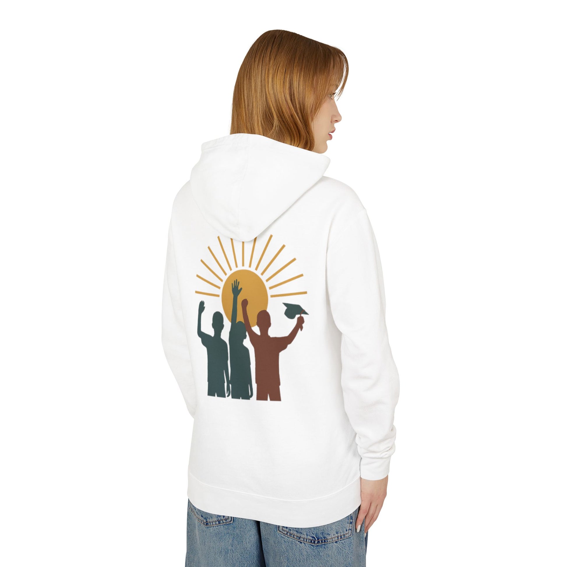 Bold. Affirming. Unapologetic. This “We Deserve to Thrive™” hoodie is more than apparel—it’s a declaration. Featuring distressed typography on the front and a radiant silhouette graphic on the back, it honors the journey of boys of color from survival to brilliance. Crafted in earthy tones with Pan-African accents, this hoodie blends cultural pride with streetwear edge. Whether worn by students, educators, or advocates, it’s a wearable movement.