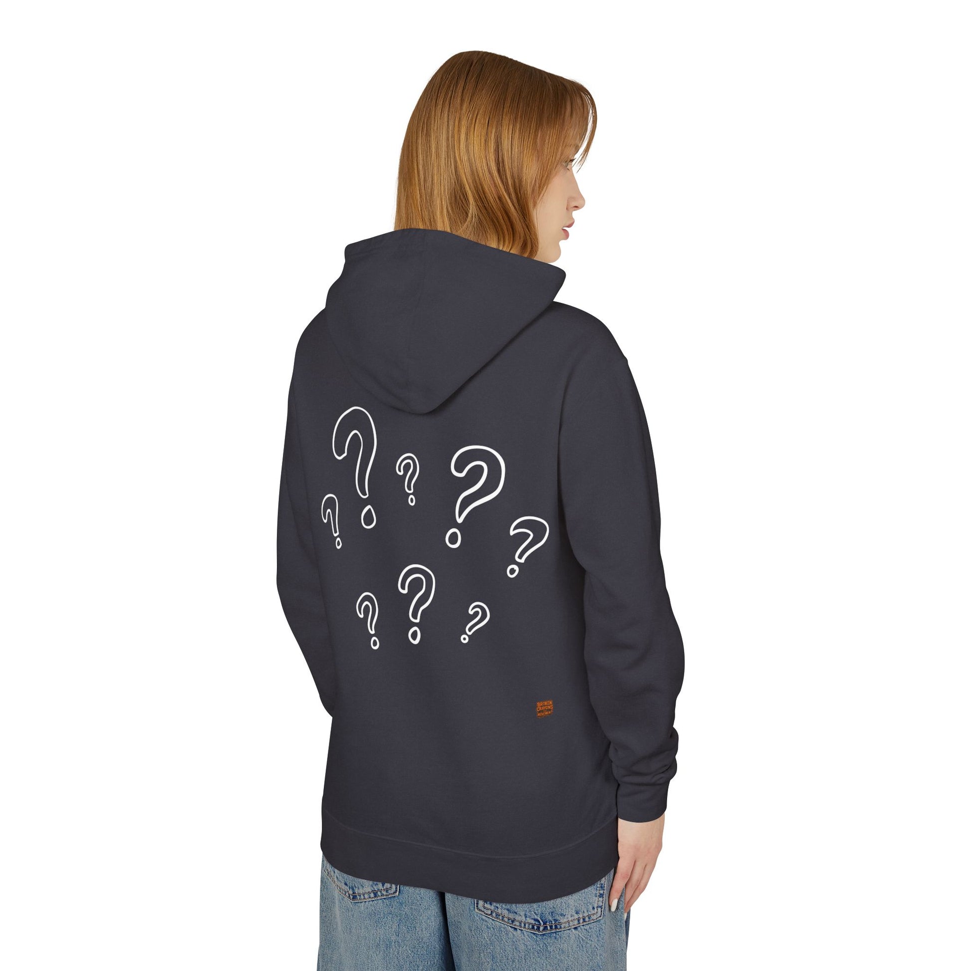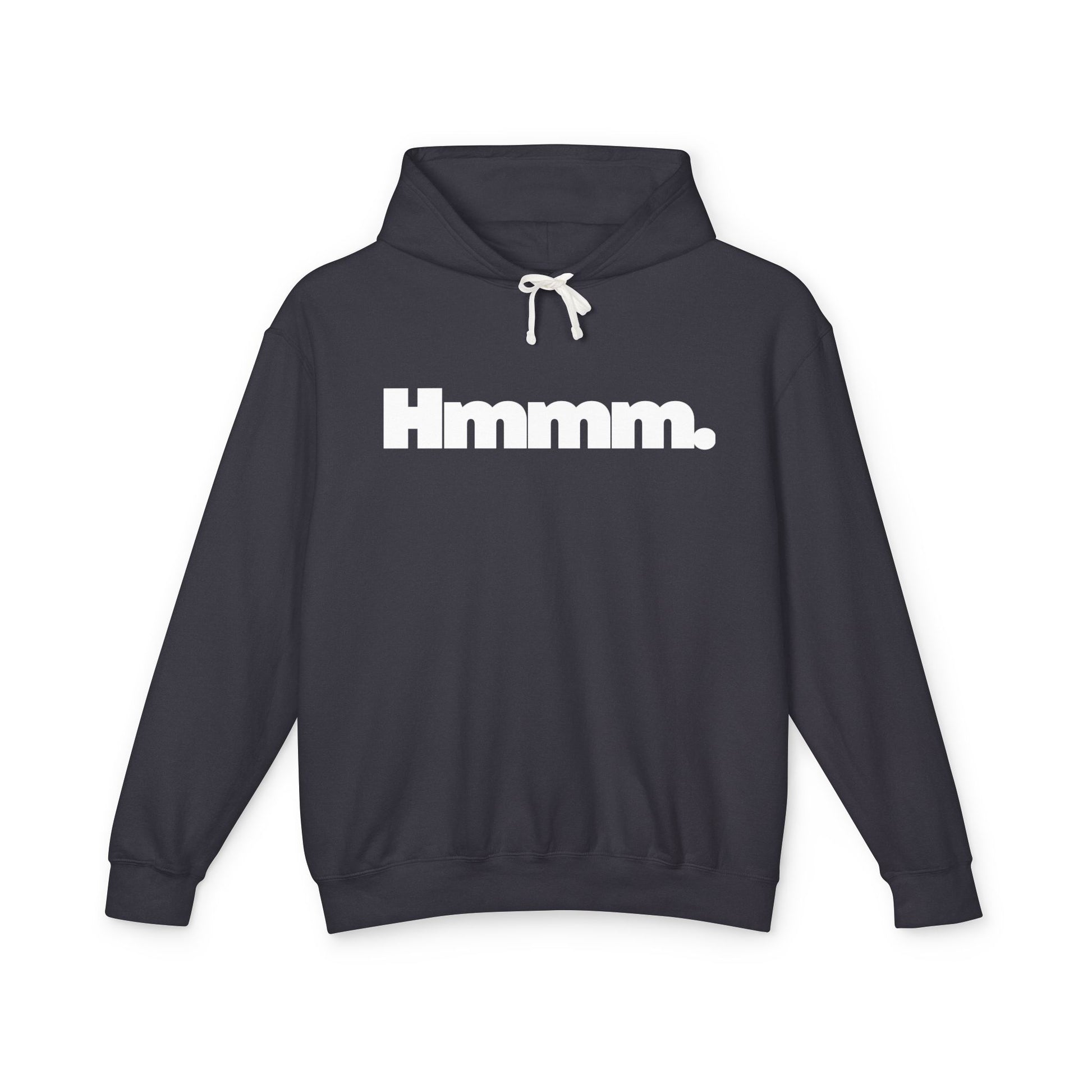 Soft, lightweight hoodie made from 100% ring-spun cotton that feels like a slow, thoughtful exhale. The front’s bold “Hmmm.” and the back’s scattered question marks create a quiet, playful mood — the kind of piece you reach for when you’re sketching ideas, wandering a bookshop, or lingering over coffee with a notebook. The jersey-lined hood and natural flatcord add a simple, intentional detail. Breathable 6.4 oz fabric and a relaxed cut let movement come easy. Subtle sustainability notes — OEKO-TEX low-impact dyes and membership in the U.S. Cotton Trust Protocol — make it a thoughtful choice for people who care about craft and comfort.