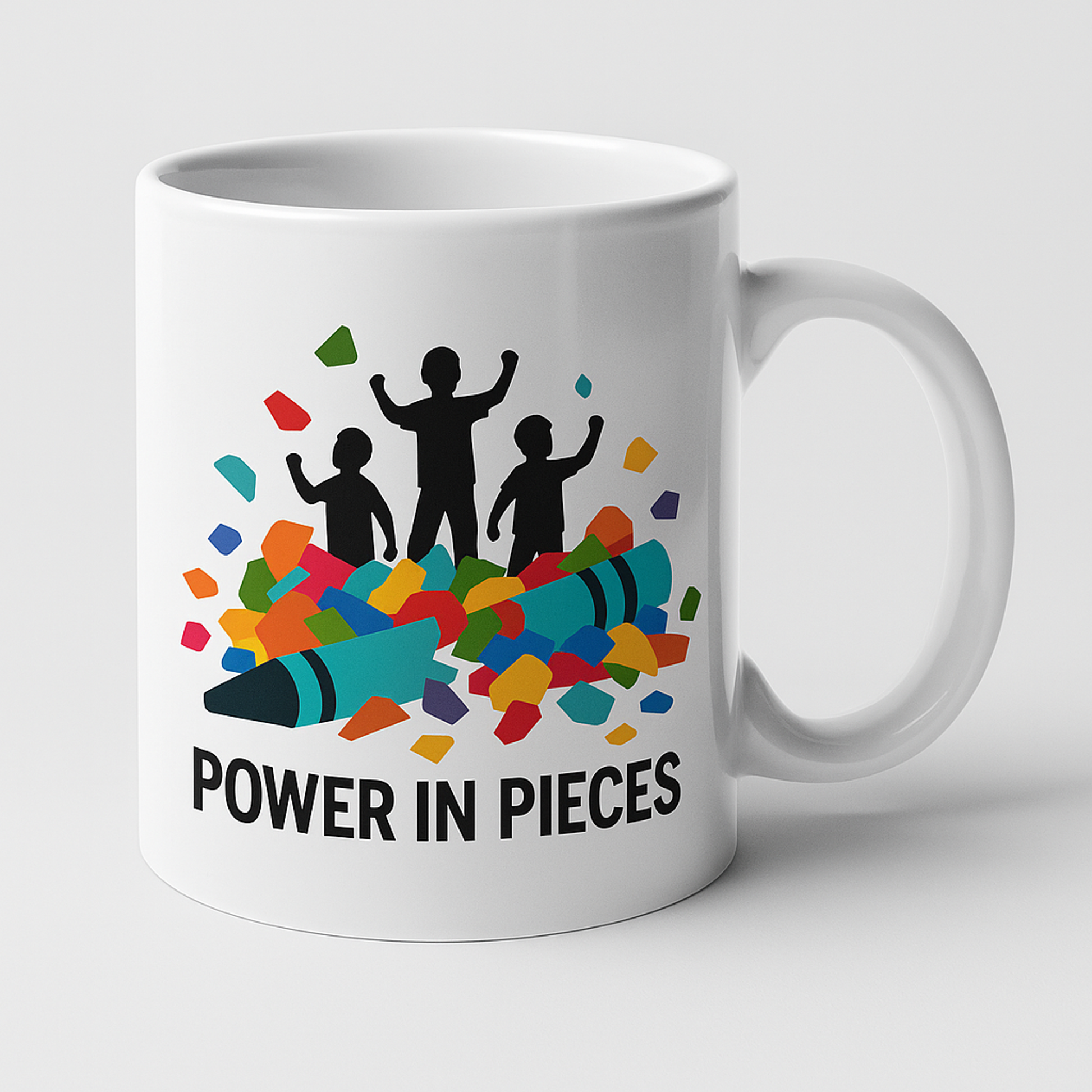 Featuring a dynamic design of shattered crayon pieces and rising silhouettes, this mug symbolizes resilience and transformation. Whether you're sipping coffee, tea, or truth, this mug speaks to every fighter, mentor, and believer who knows that greatness is built from the pieces.
