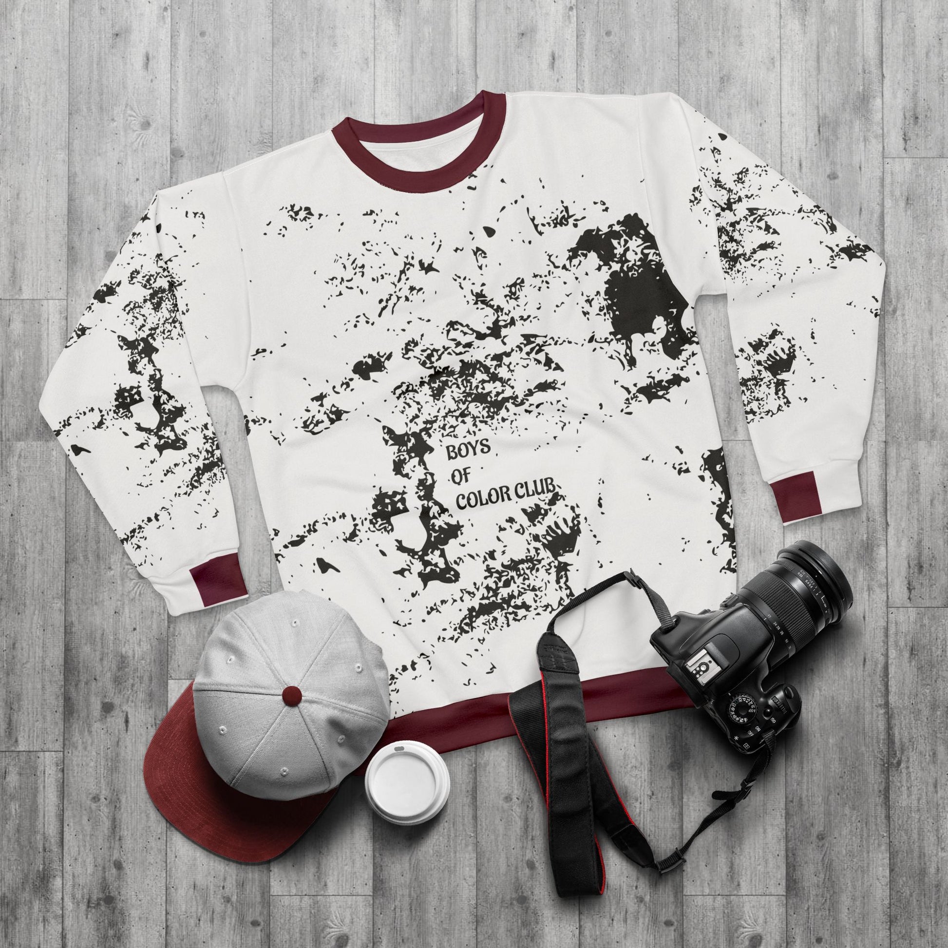 Front: Minimalist “Boys of Color Club™” text stands out against the artistic splatter print.