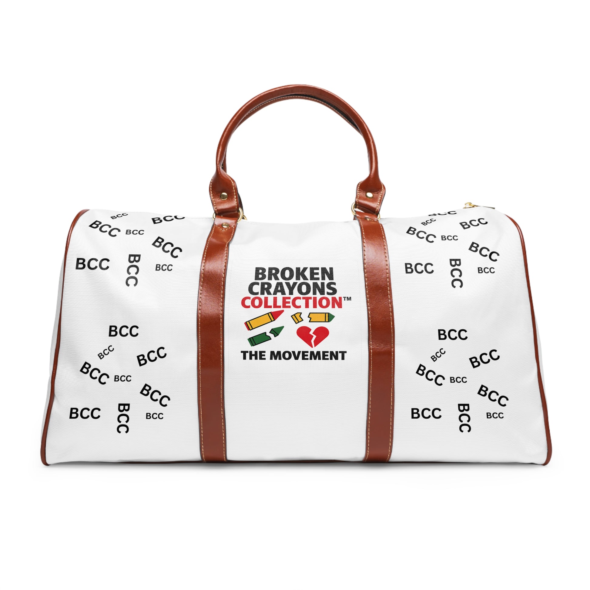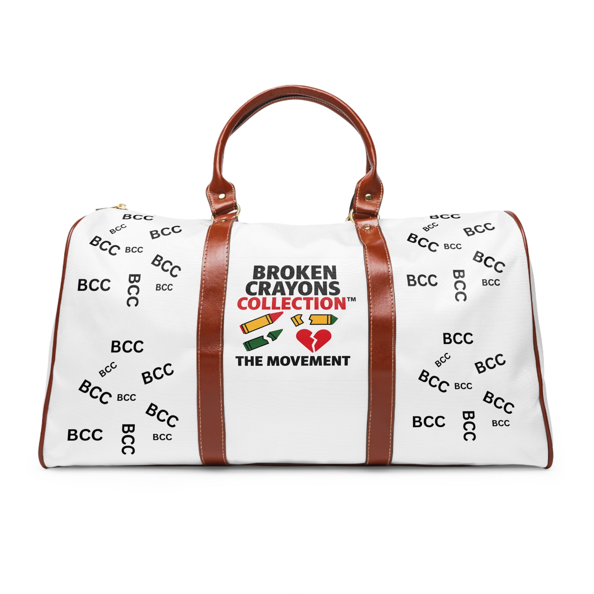 Carry the movement with you. This premium white duffel bag features bold “BCC” branding, rich brown leather accents, and a vibrant Broken Crayons Collection™ logo with colorful crayons and a red heart. Designed to uplift boys of color and celebrate resilience, this bag blends style, symbolism, and purpose. Perfect for travel, gym, or everyday impact. Join the movement—where every mark tells a story of strength.